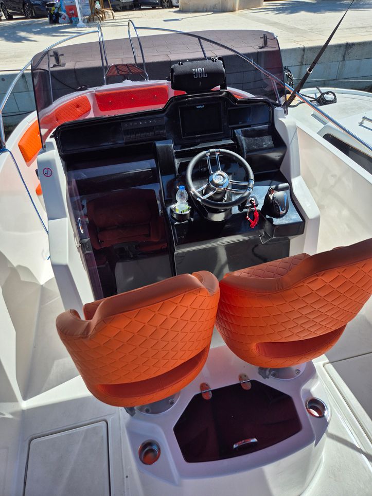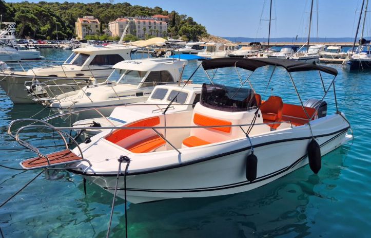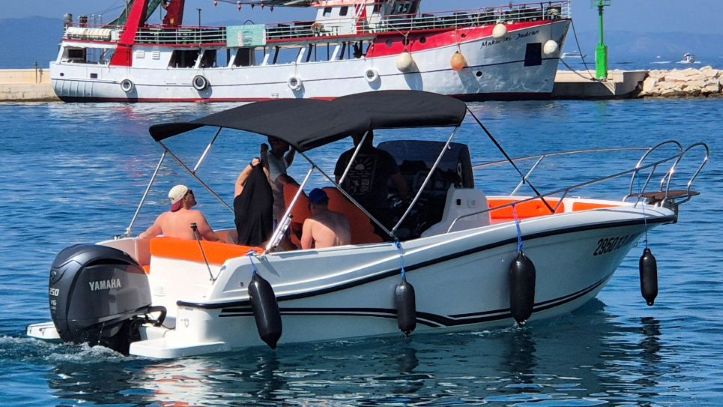 While visiting beautiful Makarska Riviera we wanted to reach islands Hvar and Brač and enjoy quiet and clean island beaches. Although there is possibility to visit both islands with big touristic boat in one day trip we didn't want to do that because of the crowd on those boats . So we browsed on internet and found a perfect solution, we contacted Antonio and Mario through website Rent a boat Makarska and arranged 2 days rent of their 7 meter long boat Patrol 690. At first sight the boat looked great and a big plus was a cabin and sunscreen because we didn't want to get sunburned and summer wind in the afternoon on the sea can be really anoying. 5 members of our family plus skipper had a great comfort on the boat. We put all our lugagge in the cabin and found seats for us in the back side of the boat. As soon as the skipper hit throttle we had constant speed of 22 knots which really suprised us, we didn't think that boat can go fast like that. Great experience was when we saw dolphins and we got relly close to them to take photos, unforgettable! Skipper Mario took us to island Brač first day where we visited famous triangle beach Zlatni rat and then we went to a nice lonesome beach in a small bay with a great restaurant. Only local fresh food is served here, squid, fresh fish, veal meat from local production on the island. Delicious! On our way back we stopped in Sumartin, small fisherman place on island Brač to have a walk but only for a short time. Our next stop was Povlja bay, beautiful bay on north side of island Brač with lot of small coves and beaches. There we got a delicious snack in the local restaurant with domestic wine. On our way back to Makarska in the afternoon a wind started to blow and sea got a litlle rough but that was no problem for the boat or the skipper. We all took a seat in the cosy cabin and enjoyed the ride back with melody of local music from the radio. Came back to Makarska harbour in the sunset, tired from really active day but also impatient for tomorows day for our boat trip to island Hvar! We payed this trip 350 eur.